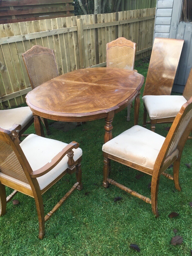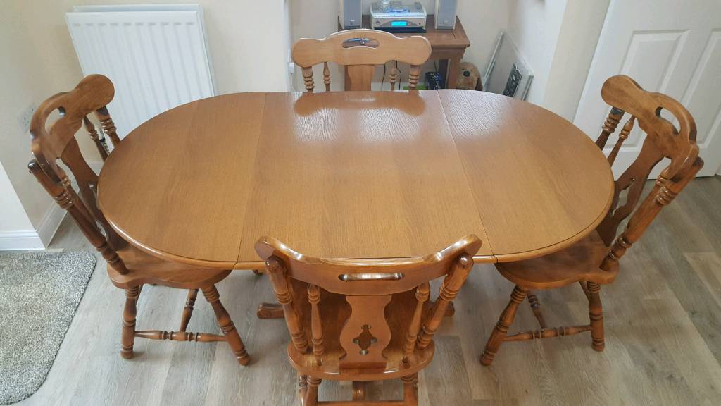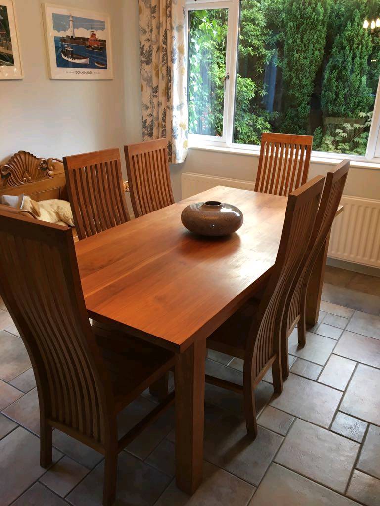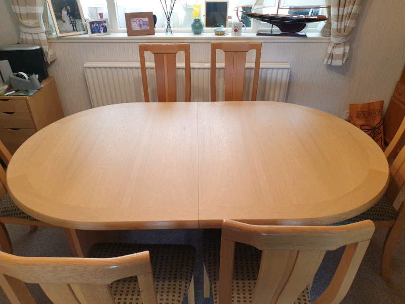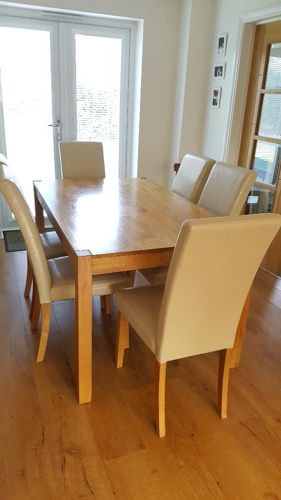 Oak Dining Table & 6 Chairs | in Knightswood, Glasgow ... from i.ebayimg.com All chairs are very sturdy and in good. Luxury oak walnut dining table with high back velvet chairs with 4 or 6 seater. Solid oak dining table with 6 chairs. Crafted from high quality oak logs and coated with lacquer to preserve the timber, this tabl. Homelegance edam 52 round dining table, oak. Dining table sets the overall mood of the space and our table will bring bright colors and positivity to your dining room. Our extending dining sets are perfect for the modern family. Get the best deals on oak dining tables.