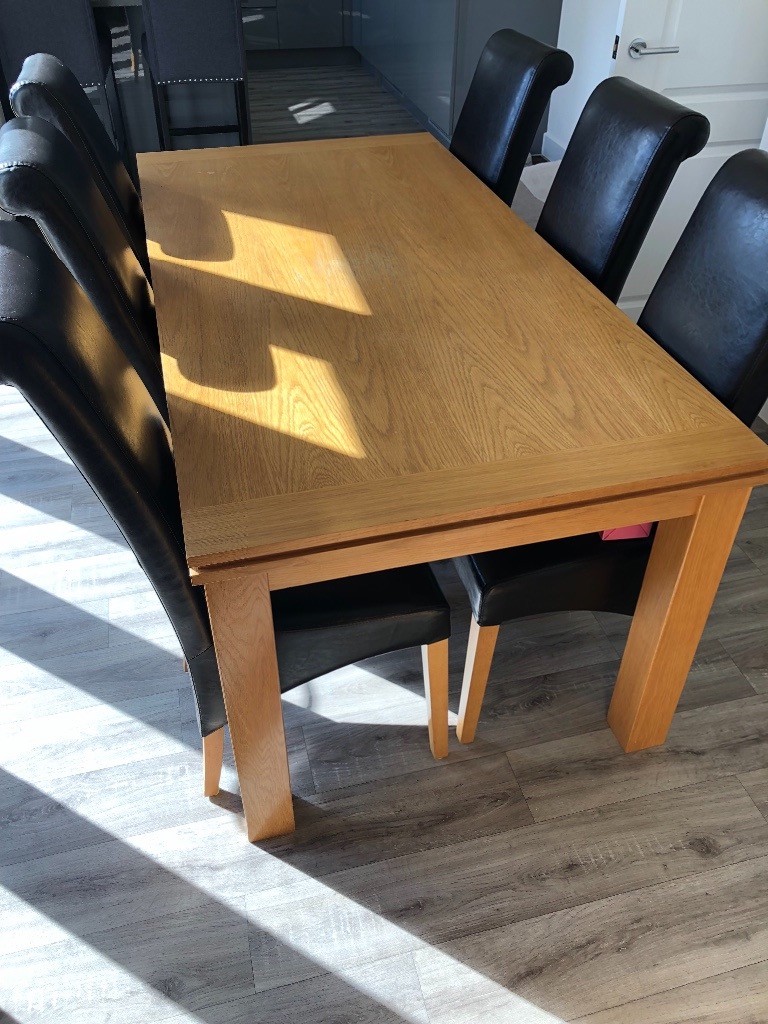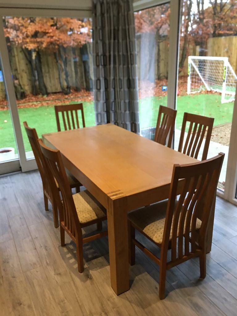 Solid oak extending dining table 6 chairs,very good condition,free delivery.