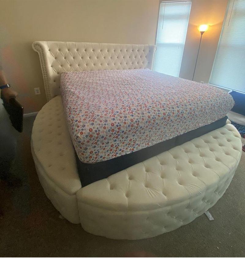 Acme furniture acme ireland eastern king bed with storage in white finish 21696ek. 89 king bed with concealed storage tufted polyester headboard solid pine wood. The modern designs feature one or more drawers that pull out underneath the bed saving you tons of with a king platform bed, you get under bed storage saving you extra storage space in your bedroom. Shop for king platform bed frame at bed bath & beyond. Chime 12 memory foam white king ultra plush size mattress.